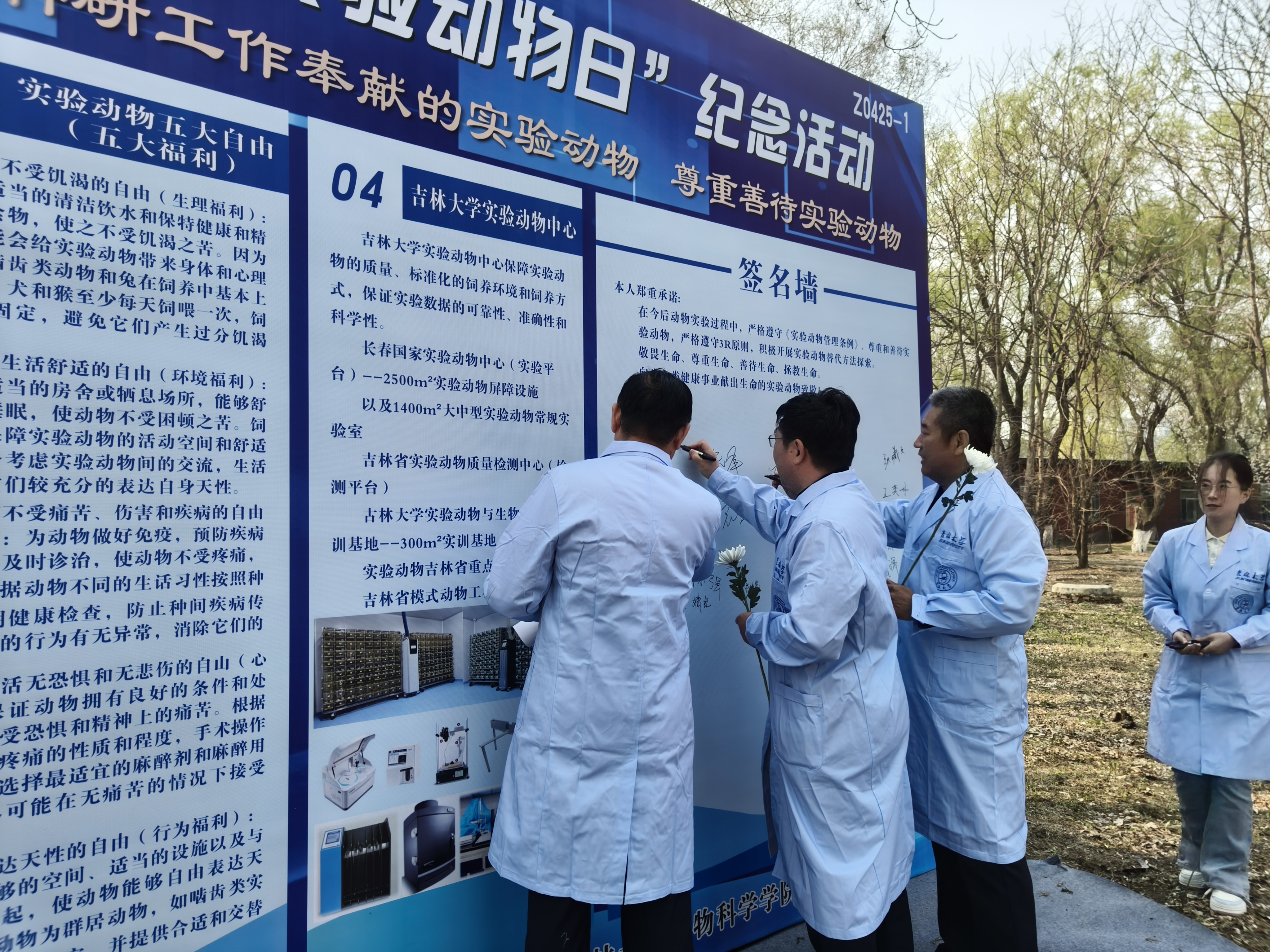 2025年4月24日,是第46个“世界实验动物日”。为深入贯彻落实中共中央办公厅 国务院办公厅印发《关于加强科技伦理治理的意见》等规定,纪念为人类健康事业献身的实验动物,加强实验动物规范生产和使用,有效防控科技伦理风险,4月24日上午,学校实验动物福利伦理委员会和学校实验动物中心(beat365英国官网网站)以科学之名和生命之名,联合在和平校区“实验动物慰灵碑”前举办“世界实验动物日”纪念活动。学校实验室管理处副处长孙翔宇、科研院科技管理办公室副主任朱峰、学校党建工作联络员狄成宇、beat365英国官网网站党委书记徐仁元、专家代表张嘉保教授,学院学习教育读书班全体学员及部分师生代表共同参加纪念活动。纪念活动仪式由beat365英国官网网站副院长袁宝教授主持。
