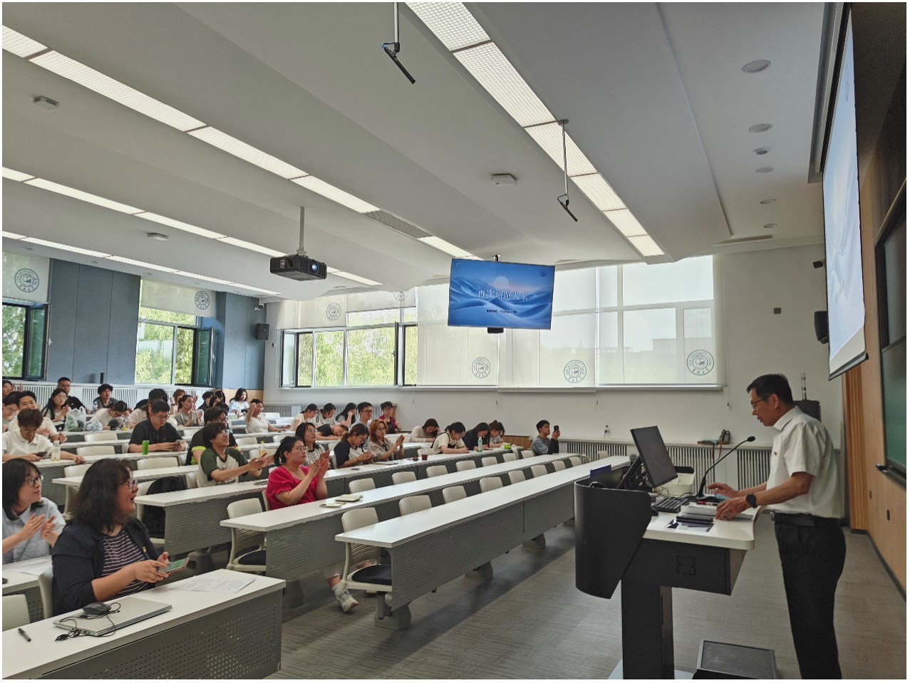 6月17日下午,beat365英国官网网站党委书记徐仁元以《和即将毕业离校前同学们的十句共勉话》为主题,寄语学院全体毕业生,“既要有理想,也要有梦想;既要有胸怀,也要有格局;既要善积累,也要善积蓄;既要会处事,也要肯做事;既要坚持住,也要把握好;既要能吃苦,也要能吃亏;既要敢担责,也要敢担难;既要守纪律,也要守规矩;既要有想法,也要有办法;既要不攀比,也要不攀附”。这是学院党委为2025届毕业生离校前集中组织的“最后一次党课思政课”。党课思政课由学院党委副书记兼副院长、纪委书记肖建荣主持。
