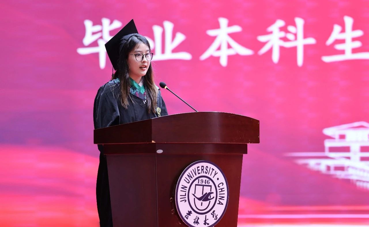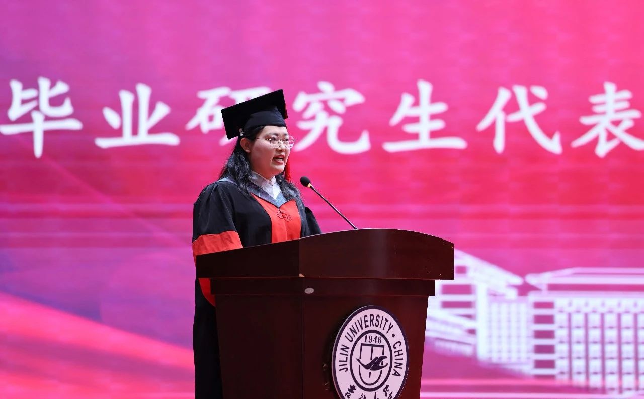 beat365英国官网网站十佳博士研究生、2022级生物学专业博士生李金泽,2021级动物科学专业本科生唐奕菲,分别代表研究生、本科生发表了毕业感言。李金泽同学分享了她在科研道路上获得的成绩,并表示自己将继续在求真求是的科研道路上增长才干,饱含热忱,以知识应对挑战,与时代同频共振。唐奕菲同学则回顾了在校期间的学习和生活经历,表达了对母校和老师的感激之情,并将带着这份感恩与热爱,在人生新征程上奋力奔跑,不负韶华,不负期待。