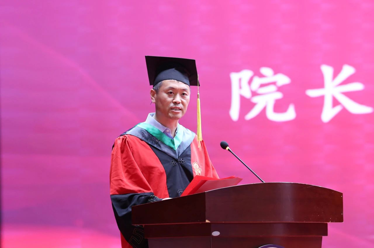 院长孙博兴作毕业典礼致辞,他期待学院全体毕业生要做“顶天立地”的动科人,把个人理想融入党和国家的各项事业中,将科研成果写在祖国的大地上;期望学院全体毕业生要做“破界融合”的创新家,在AI时代把握好人生航向,在跨界融合中不断开拓创新;期盼学院全体毕业生要做“知农爱农”的践行者,练就兴农本领,厚植爱农情怀,在农业强国建设的广阔舞台上建功立业。他深情嘱托学院全体毕业生要如骏马驰骋天地、如耕牛笃行不辍,肩负起“强农兴农”的使命,在社会的大课堂中成就自我、回馈社会!