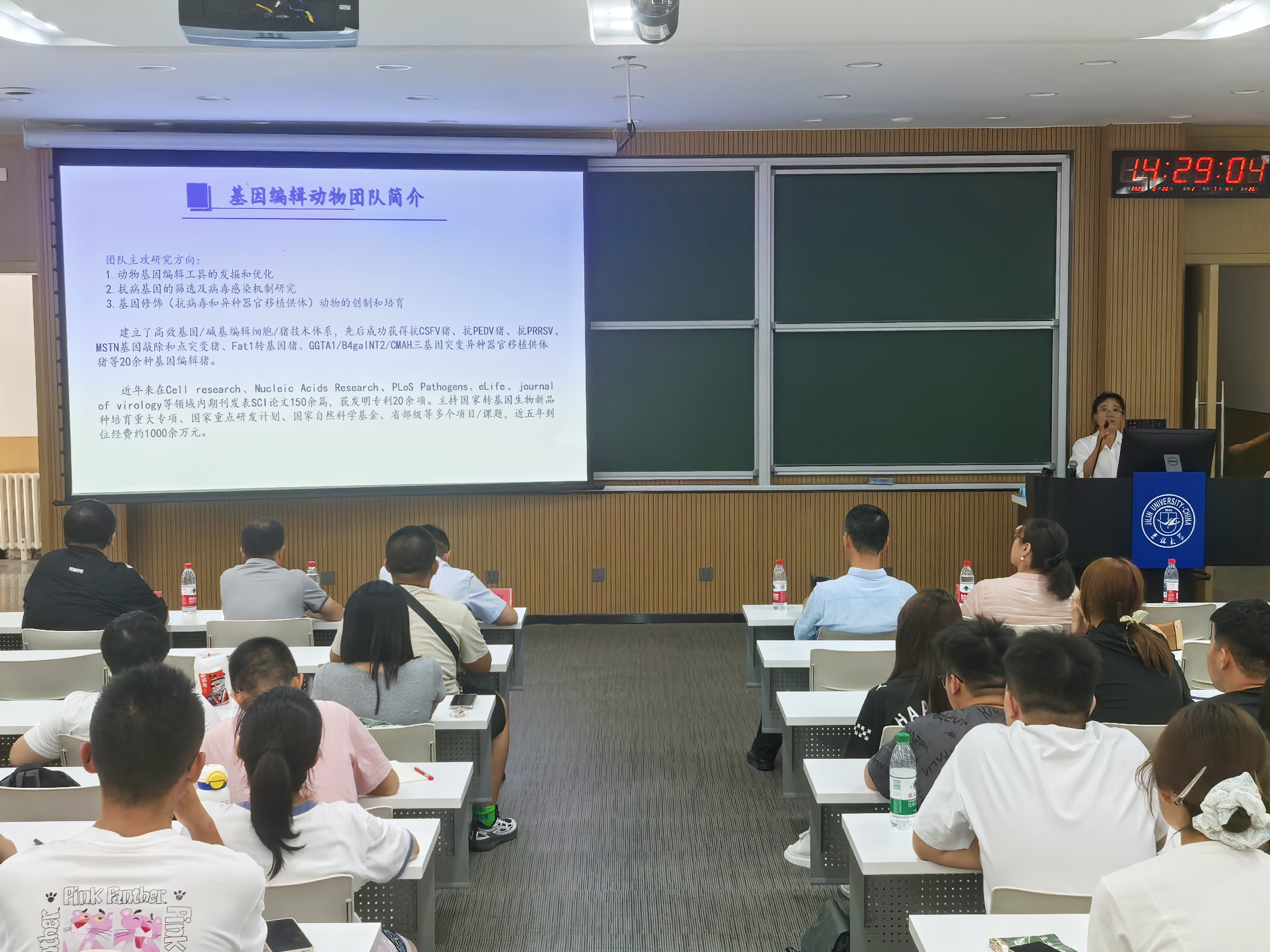 活动伊始,一部全景式学院宣传纪录片拉开序幕。影片以 “从实验室到养殖场” 的叙事逻辑,串联起学院在畜禽遗传育种与繁殖、动物营养调控、实验动物模型构建等领域的科研突破,展现了 “科技赋能现代牧业” 的生动实践 —— 从精准饲喂系统助力养殖效率提升,到基因编辑技术推动畜禽抗病育种,再到生态养殖模式守护绿水青山,让新生直观感受到动物科学学科 “服务国家战略、保障民生需求” 的重要价值,现场不时响起阵阵掌声。