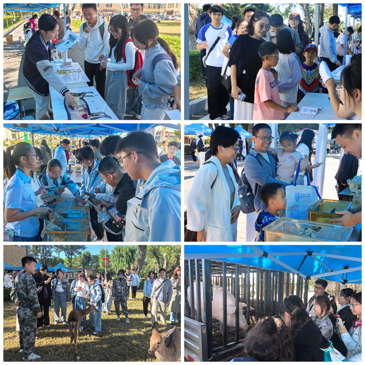 学院还设置了企业展区观摩、萌宠互动、动物科学知识趣味活动及动物性食品品鉴等特色版块。参加活动的教职工和青少年朋友在工作人员指导下安全饲喂梅花鹿,近距离观察“军牧一号”白猪、向海飞鹅等特色品种,与各类实验小鼠及基因编辑猫等前沿科研模型动物接触。学院科研团队自主研发的东辽黑猪肉、长白山黑牛排、双乾肉羊串、向海飞鹅制品等品鉴食品获得了大家的一致好评。