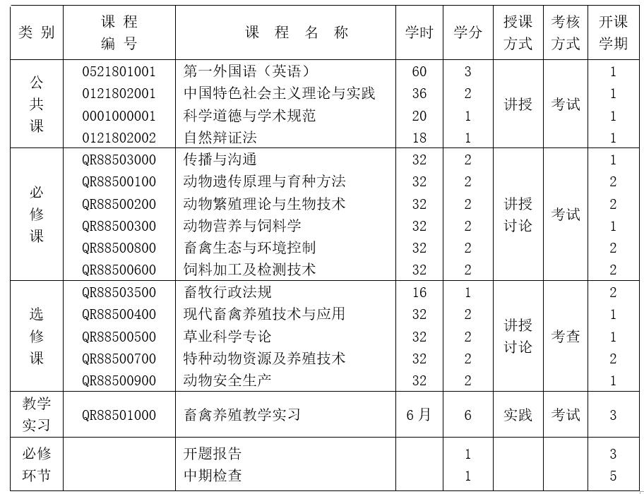 农业硕士专业学位(畜牧领域)全日制研究生课程设置表