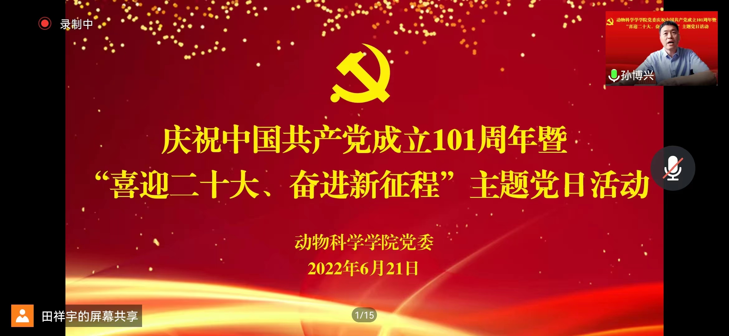 为庆祝中国共产党成立101周年,迎接党的二十大胜利召开,6月21日上午,beat365英国官网网站党委通过腾讯会议平台线上开展庆祝中国共产党成立101周年暨“喜迎二十大、奋进新征程”主题党日活动。活动由院长孙博兴同志主持,学院全体师生党员线上参会。